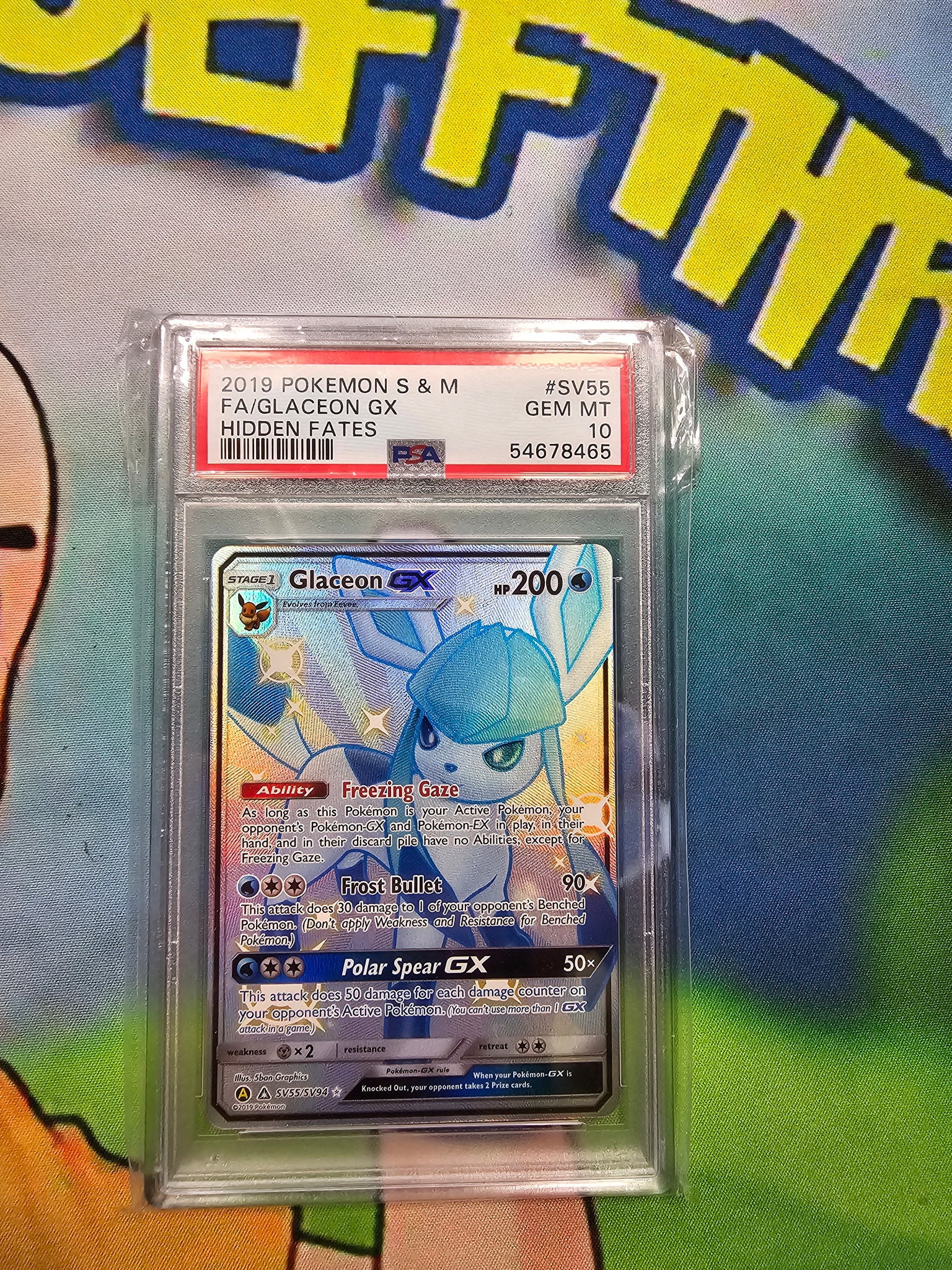 2019 POKEMON S & M FA/GLACEON GX HIDDEN FATES PSA 10 CERT 54678465